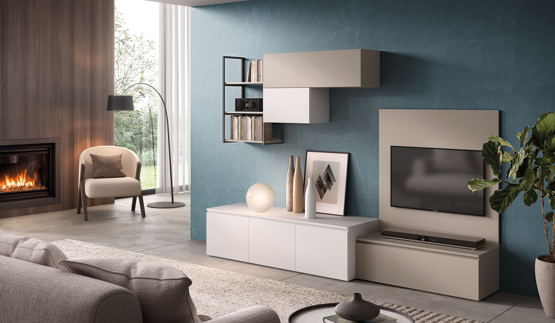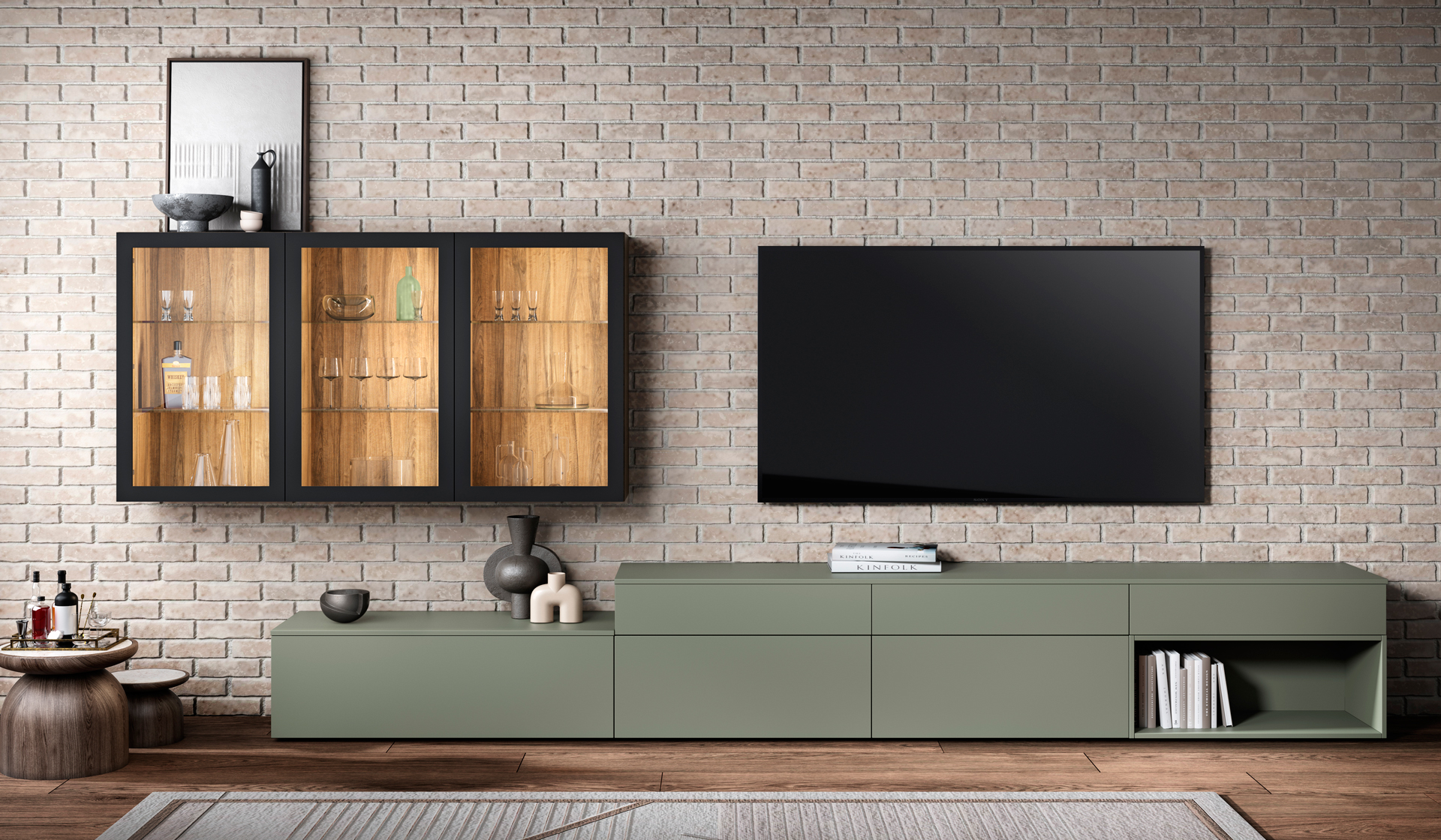 You can combine base units with storage compartments, shelves, countertops, wall cabinets, TV stands, and practical drawers to organize the space according to your preferences. Let yourself be inspired by our compositions!